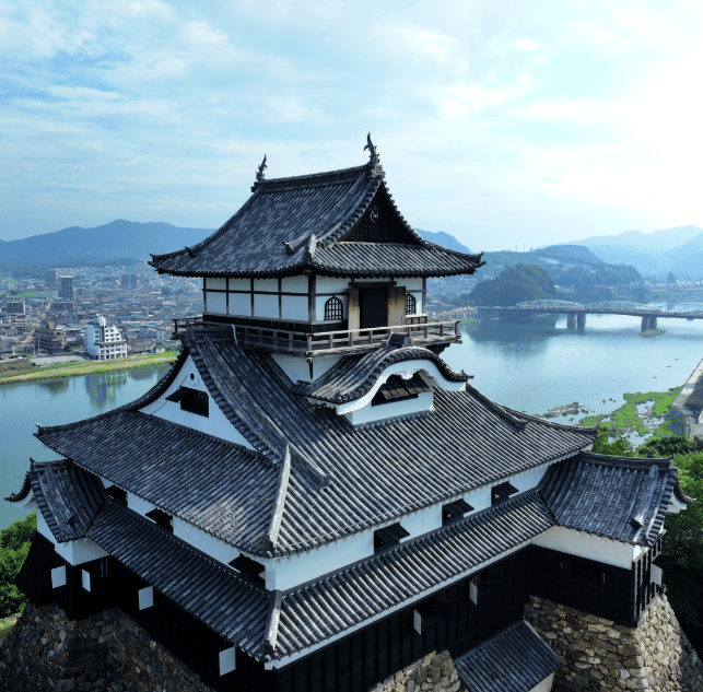 犬山城位於木曾川河畔的山丘上,是日本現存最古老的原木造天守之一,